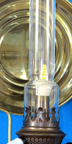 Das Licht der LED (hier für das Foto nur mit 10% ihrer maximalen Leuchtkraft betrieben) beleuchtet anheimelnd den Raum.